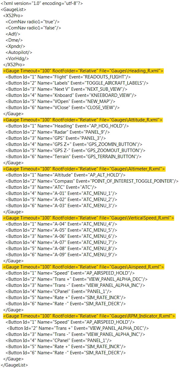 Below is the content of SaiFlightSimX.xml file under C:\Program Files (x86)\Saitek\DirectOutput directory. More information about the techniques of changing these keys on FIP could be found in Part 1 to Part 3 of Flight Instrument Panel Tweakstories earlier posted.