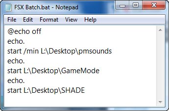Here is the script of my FSX Batch.bat file.