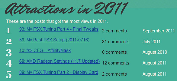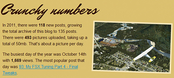 140: Annual Site Report 2011 January 2, 2012January 3, 2012 | Tom Tsui Followings are the activity summaries of this blog in 2011 if you are interested. Share this: Print (Opens in new window) Print Email a link to a friend (Opens in new window) Email Share on Facebook (Opens in new window) Facebook Share on LinkedIn (Opens in new window) LinkedIn Share on X (Opens in new window) X Share on Tumblr (Opens in new window) Tumblr Like Loading... Related