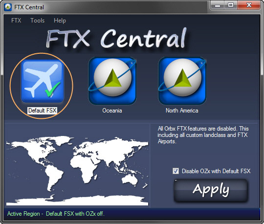 Now return to the FTX Central and switch to Oceania region. (You may have to run FTX Central again if you have quitted it in step 2.)