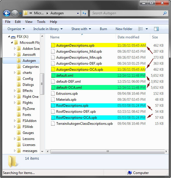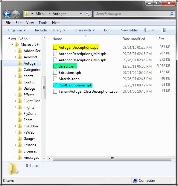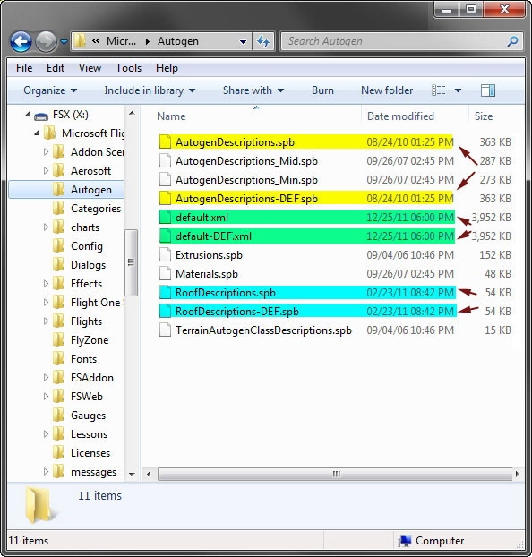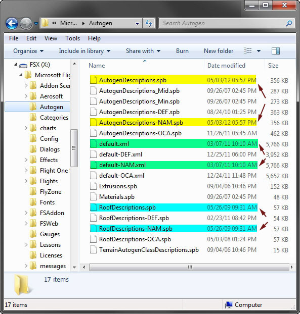 The three files highlighted above are the key autogen files associated with FSX in default regional setting. Make a copy of them and rename them to
