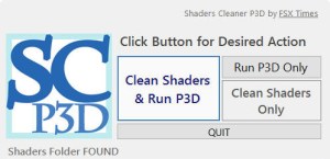 Rebuilding shader cache is a commonly used method to fix many issues suddenly coming up without a proper cause in either FSX or P3D.  Shaders Cleaner helps clean Shader Cache right before the loading of FSX or P3D.