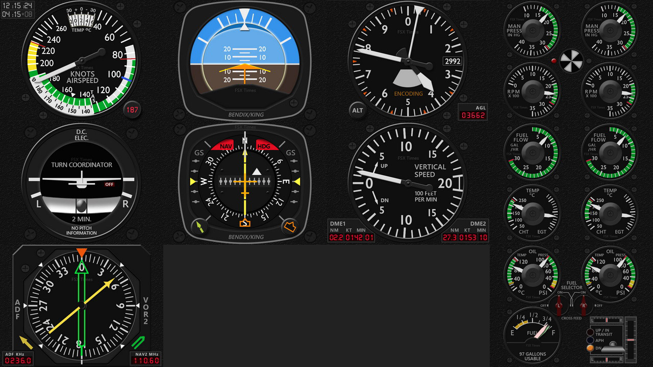 In this official release, an extra standalone gauge plate for the Turn Coordinator is included. Local and Zulu Time Clocks are added to the AirSpeed Indicator. The True Airspeed Digital Display shown in the last preview has been moved to a position overlaying