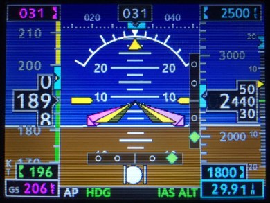 Here’s the screen-shot of the PFD with dual-cue flight director I am working on. It looks and fits better on