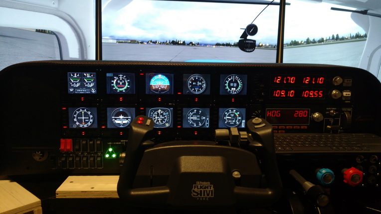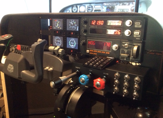 Followings are the cockpit pictures from Thomas Campbell who basically built his cockpit on the Volair Sim Avionics Panel. It looks pretty nice.