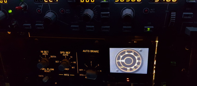 Following is a picture sent by a friend who is using the Flaps Indicator in his PMDG set up. He said the back lighting is a perfect match.