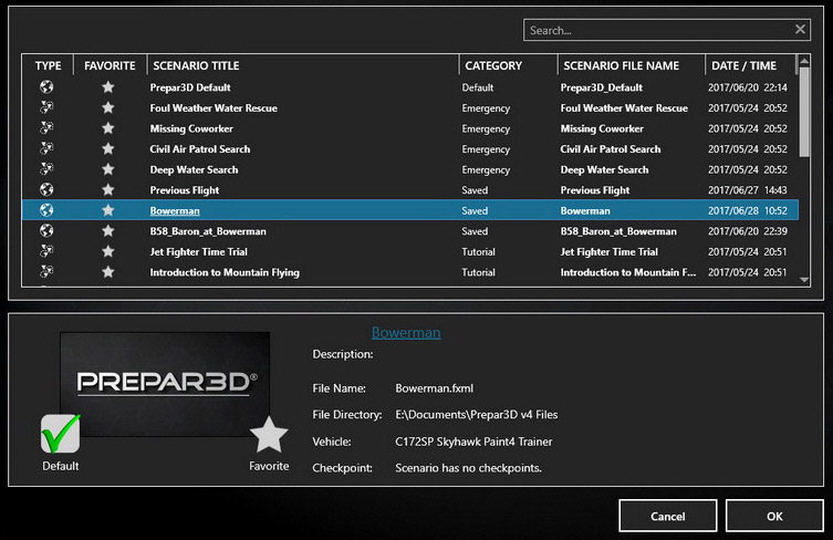 Copy the previous P3Dv3 default Scenerio files (e.g. “Bowerman.fxml” and “Bowerman.wx”) from