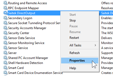 Right-click on “Saitek DirectOutput” entry and choose “Properties”