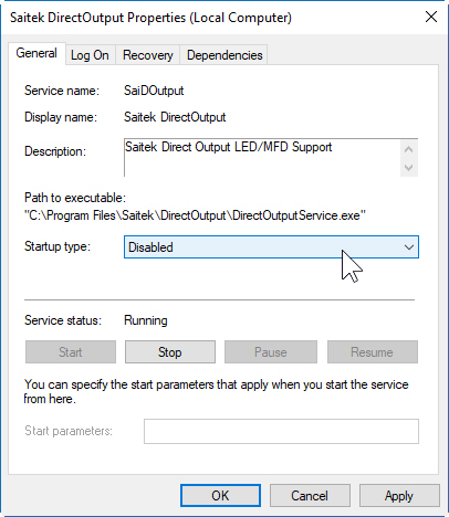 In case you need to reactivate the “Saitek DirectOutput” service, repeat Step 8 to 11 above and change the Startup type from “Disabled” to “Automatic” or “Manual” in Step 10 above.
