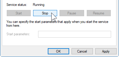 Lastly, click “Stop” on the Service status if it is still running. Then “OK” to quit the services app.