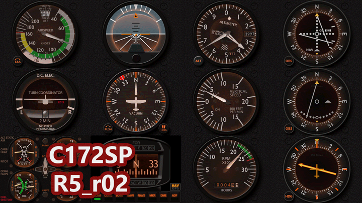 The C172SP Standalone Gauges (FSX/P3D) have just been updated to R5r02 with new back-lit effect as shown below comparing the previous version.