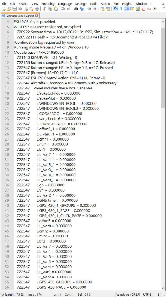 Then from now on, whenever you want to find out what Local Variables are being used on the aircraft you are flying with, just press the button with the associated function. FSUIPC will embed the Local Variables of the aircraft in its log file.
