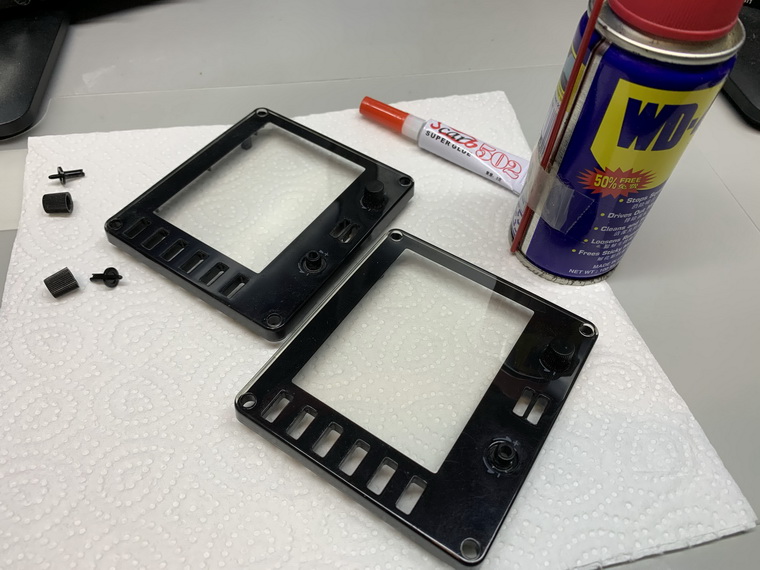 Stuffs needed are just some super glue and WD40, and I put everything on a piece of paper to avoid either the glue or the WD40 spilling over onto the table.
