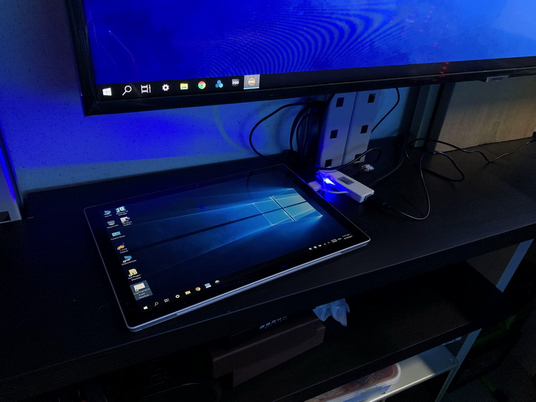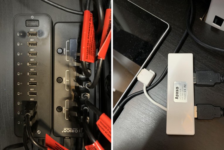 Since the Surface Pro has only one USB port, the two electrical-powered USB hubs are firstly connected to a 4-port USB hub and then further plugged into the notebook (or tablet if you prefer). This 4-port USB hub is a standard USB 2.0 with no power.