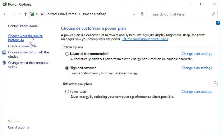 2) Click on “Choose what the power buttons do” on the left hand side.
