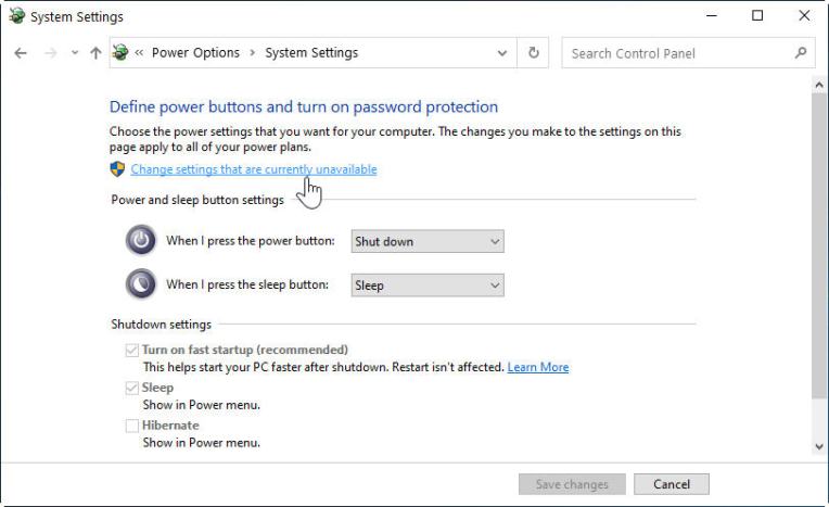 3) Click on “Change settings that are currently unavailable” to allow the changing of settings, if required.