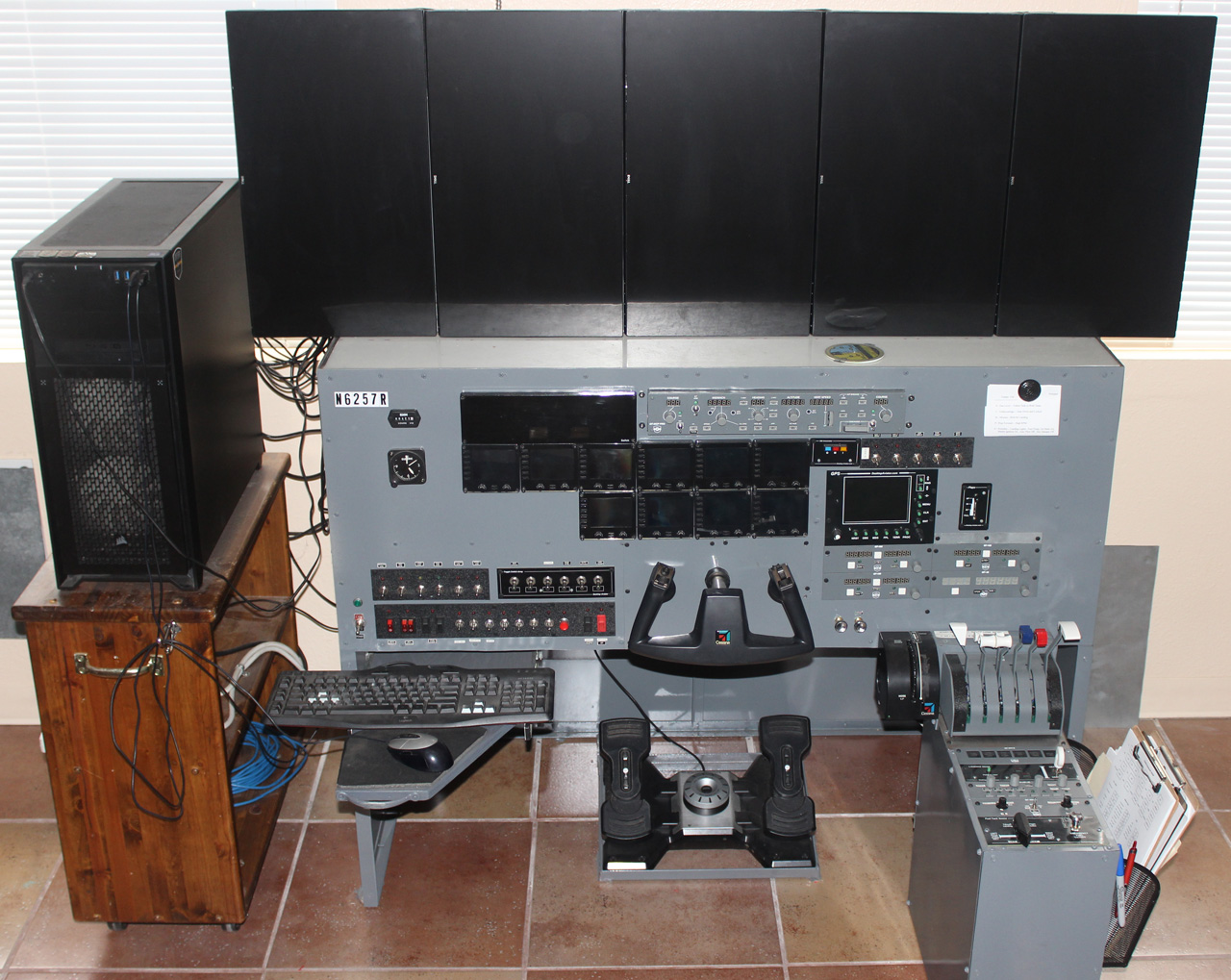 In the cockpit, I’ve combined GoFlight products with Saitek (Logitech) Instruments and BIP. The Switch Panels are mine, except for one from Desktop Aviator.
