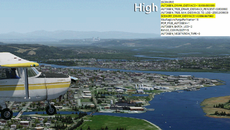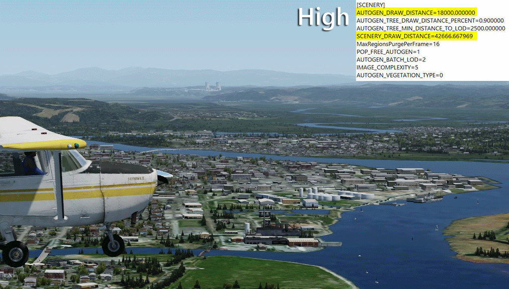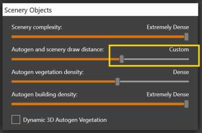 As mentioned in My P3Dv5 Settings, I set the Autogen and Scenery Draw Distance to High as
