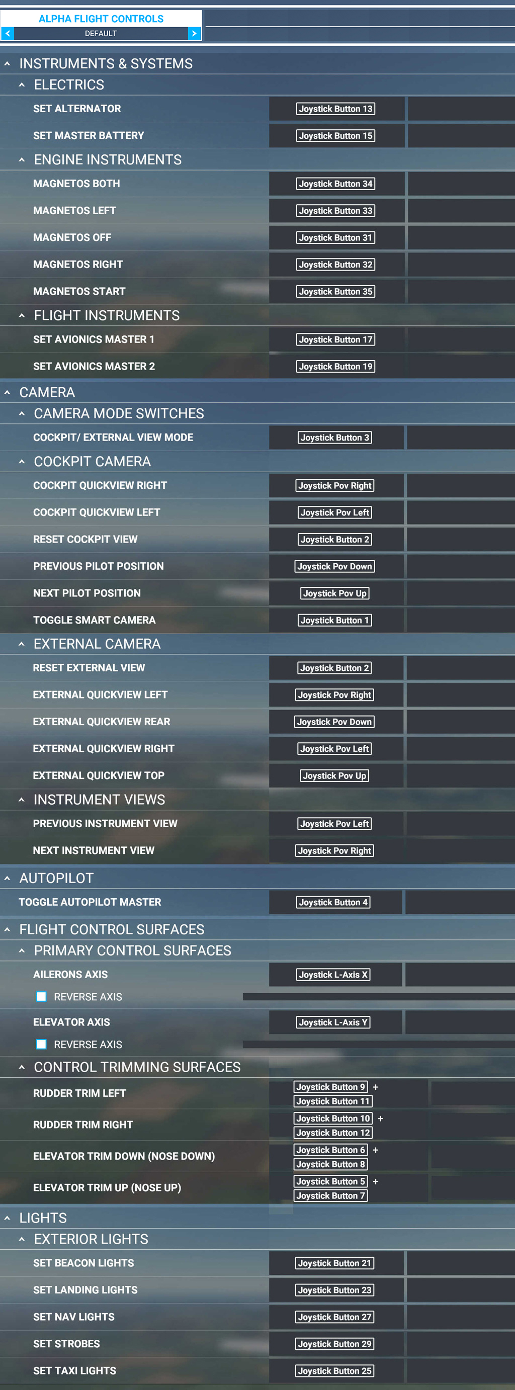 Anyway, followings are the default button mappings on the Alpha Yoke: