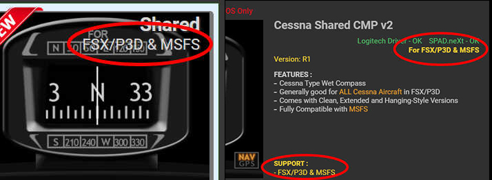 These gauges will have a remark of FSX/P3D & MSFS or For FSX/P3D & MSFS in their descriptions and details information pages.