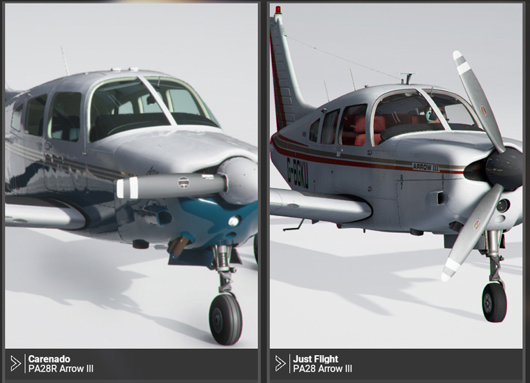 There are two versions of Piper PA28R Arrow III on the market for MSFS — one from Carenado and the other from Just Flight.