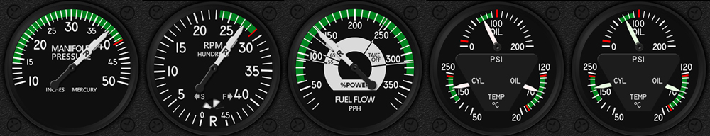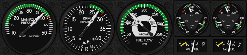 The Engine Clusters for the Black Square (BKSQ) Duke Piston B60 and B60 Grand are now completed. The package not only includes the Manifold Pressure, RPM, Fuel Flow, Oil Pressure, Oil Temperature and Cylinder Temperature Gauges in full format,