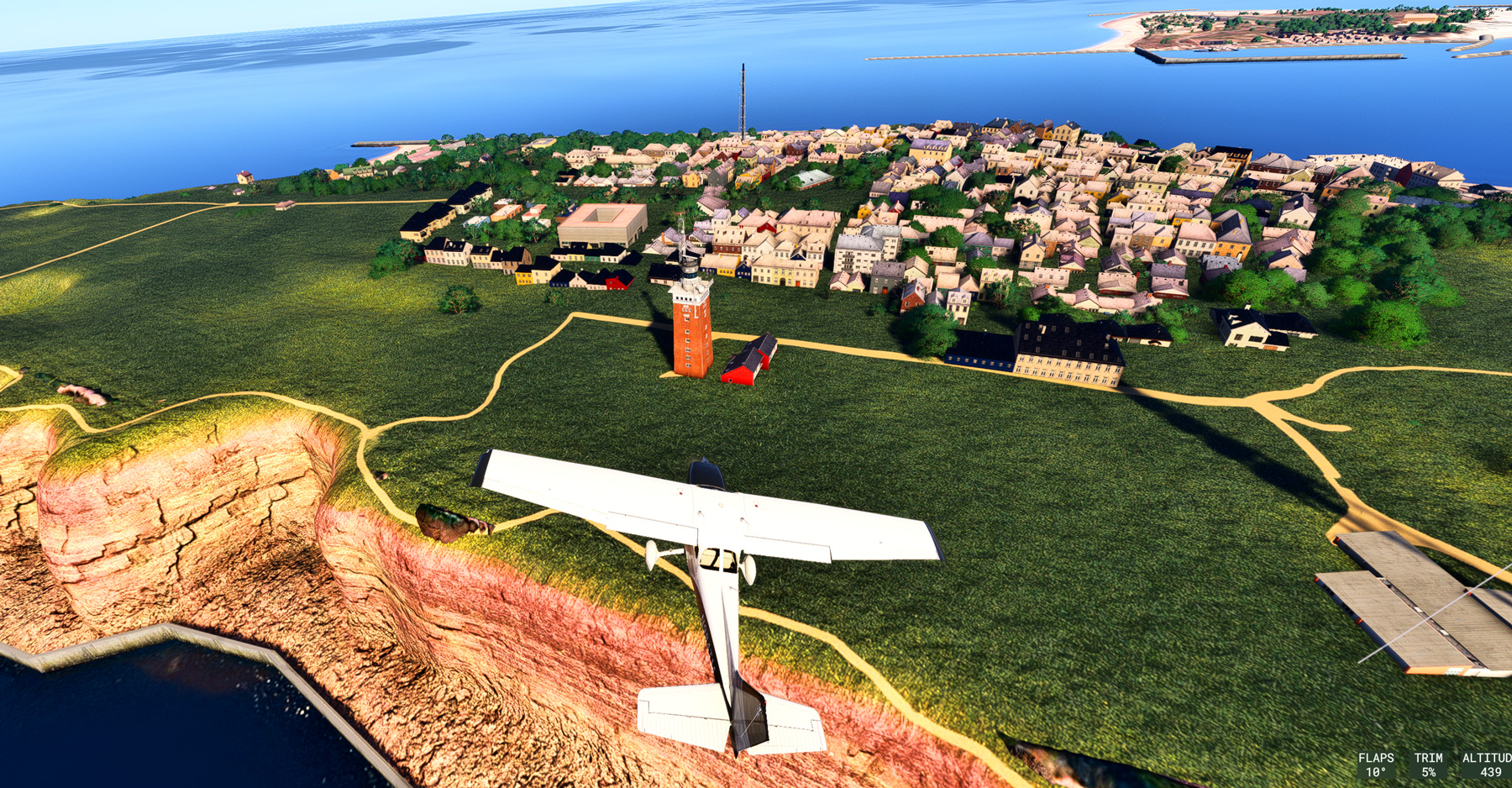 The terrain and objects (or basically everything) are so sharp and clear, and exceptionally rich in details. I am talking about the default scenery without any enhancement by third-party addons. Coastline rendering has also been significantly improved (click image to enlarge the picture).