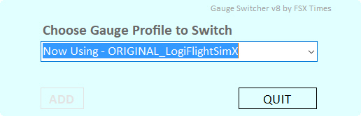 GaugeSwitcher is a very easy to use program developed to help Logitech or Saitek FIP (Flight Instrument Panel) users to quickly switch between multiple FSX Times Gauges (say from C172SP to B58 to Mooney Bravo to RAS Duke or vice versa) to match with the aircraft being used in FSX, FSX-SE and P3D.