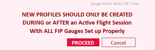 – The Profile ADDITION process MUST BE CARRIED OUT only DURING or AFTER a flight session in which all desired FIP gauges have been set up correctly.