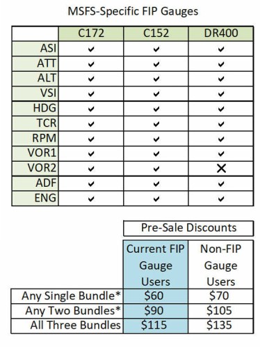 Followings are the FIP Gauge line-ups for the C172, C152 and DR400 in MSFS being developed. Special Pre-Sale Discount offers given to Current FIP Gauge Users (highlight in blue) and Non-FIP Gauge (New) Users are listed below.
