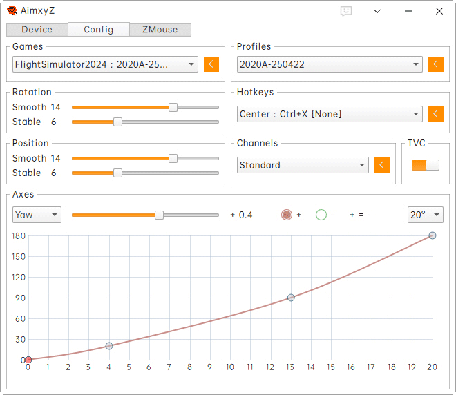 This is my current AimxyZ settings for FS2020 & FS2024 (Version 2.3.12.0)