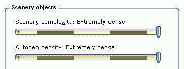When one sets the IMAGE_COMPLEXITY and AUTOGEN_DENSITY to the maximum, reducing either or both of these two quantities for trees and buildings could bring a significant performance improvement while maintaining a good level of image complexity and density.