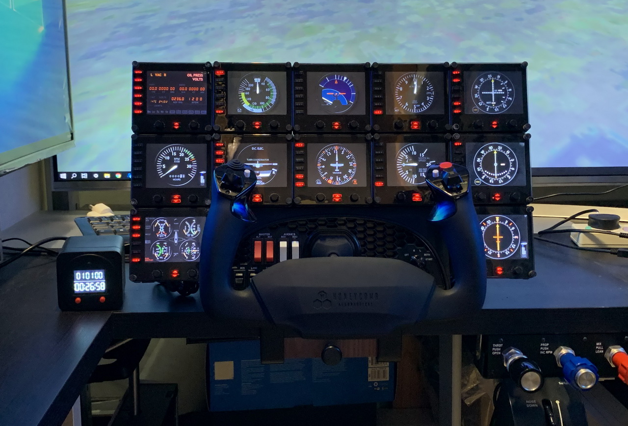 While doing fine-tuning and waiting for fixes for the new P3Dv5, I continue to have my cockpit rebuilding going on as planned. Now is time for the gauge components that reaches a total of 12 FIPs stacking up on top of the HoneyComb Alpha Yoke (click image to see larger picture). They should be good enough for most of my light aircraft flightsimming requirements.