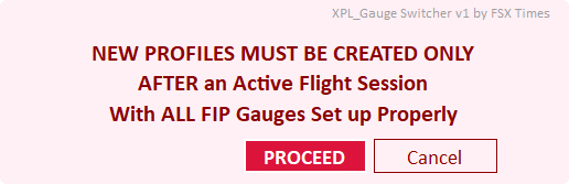 – The Profile ADDITION process MUST BE CARRIED OUT ONLY AFTER X-Plane runs and quits with the desired FIP gauges set up correctly.